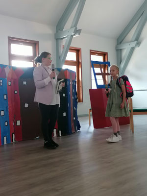 Das war ein aufregender Tag für alle Beteiligten. Es gibt bei uns jetzt die Koalaklasse mit 17 Kindern und die Eisbärenklasse mit 16 Kindern. Die Einschulung erfolgte wie schon in den vorigen Jahren im DGH Breuna. Die Feier dort ist einfach viel angemessener untergebracht als in unserer Turnhalle. Auch die klassenweise Einschulung hat sich bewährt.
