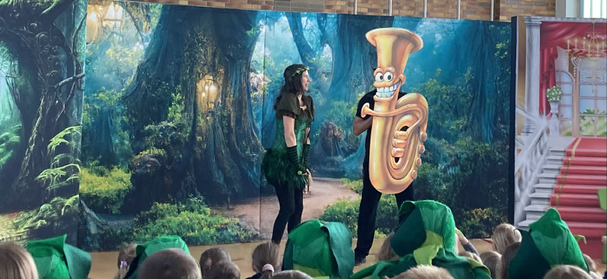 Mit nur zwei Darstellern gelang es eine spannende Geschichte rund um das Thema Orchester und Oper zu erzählen. Die einzelnen Musikinstrumente wurden vorgestellt und wir hörten Arien aus bekannten Opern, wie beispielsweise „Die Hochzeit des Figaros“ oder die „Zauberflöte“.