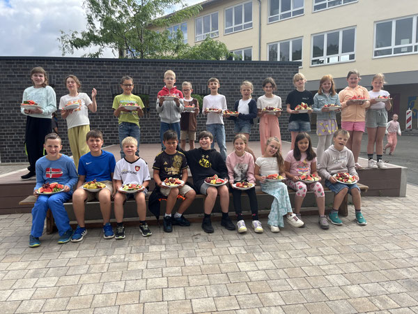 Am Donnerstag fand wieder der Obsttag an der Schule statt. Im Rahmen der HNA-Aktion Kinder für Nordhessen bereitete diesmal die Klasse 3a ein gesundes Frühstück vor.